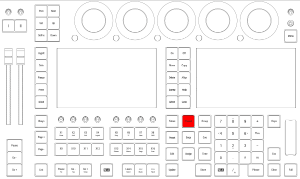Pressing Channel repeatedly switches through Channel, Universal, and ID types in use. ID types where no patched fixtures are assigned are not showing in the command line.