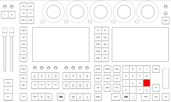 Pressing - - decreases the dimmer level of the selected fixtures by 10%.