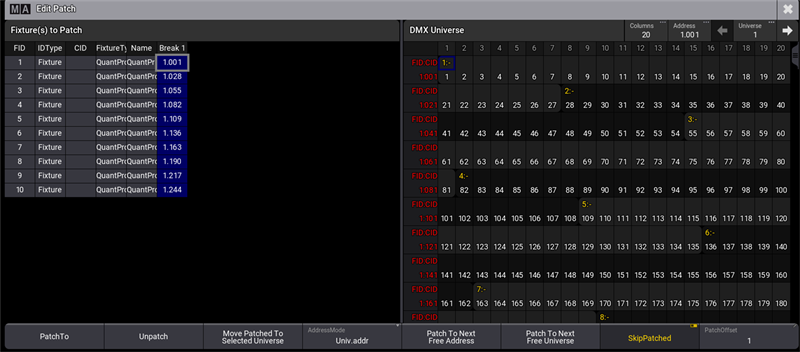 The Patch keyword is used to edit the patch address of single fixtures or entire fixture selections.