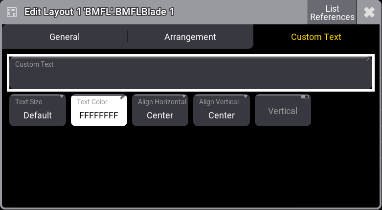 - Vertical: Displays the custom text in vertical direction when enabled.