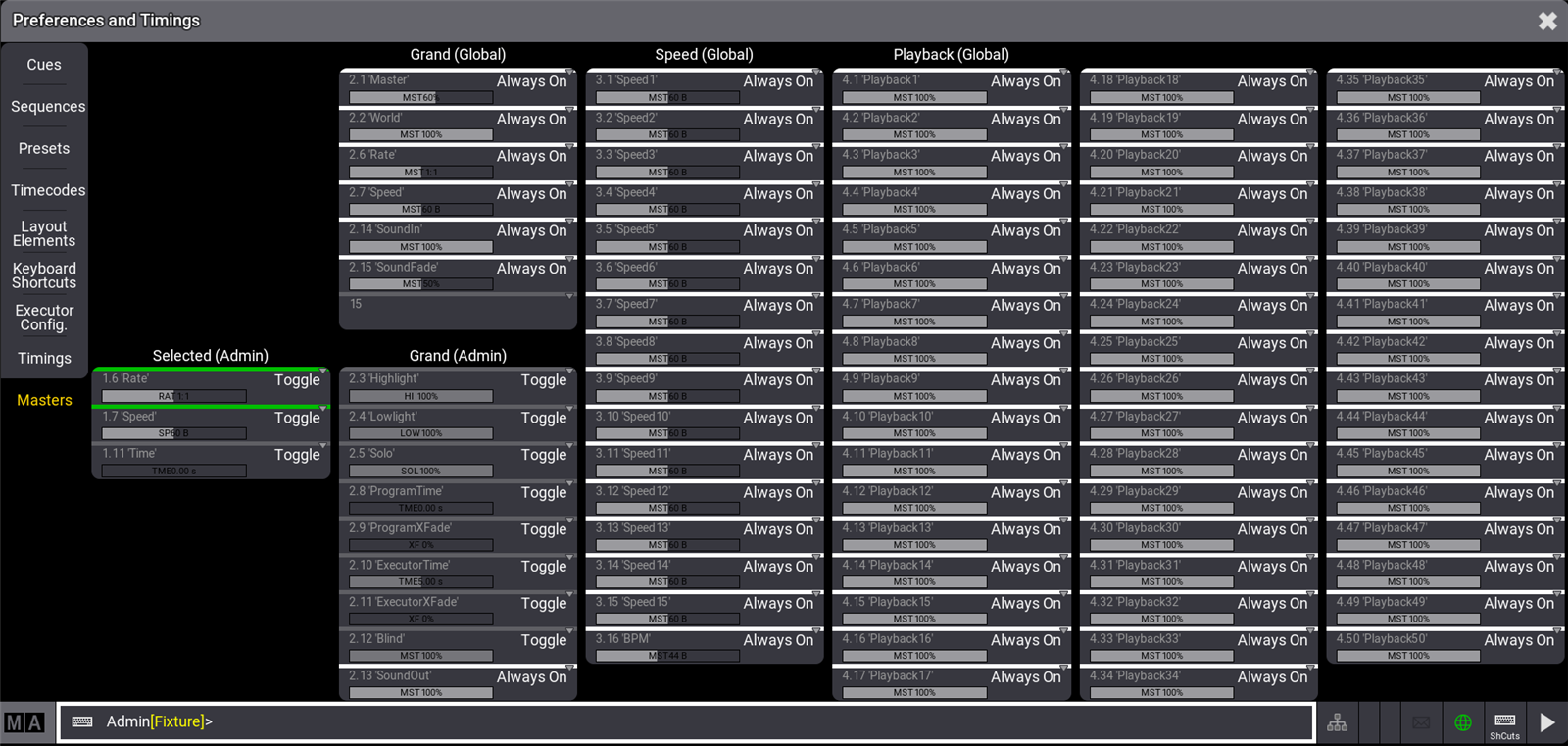 Masters can have a global membership which means that these masters are controlled by all users of the show file. Masters with a user membership are located within the user profile which means that every user profile has its own individual set of these masters.