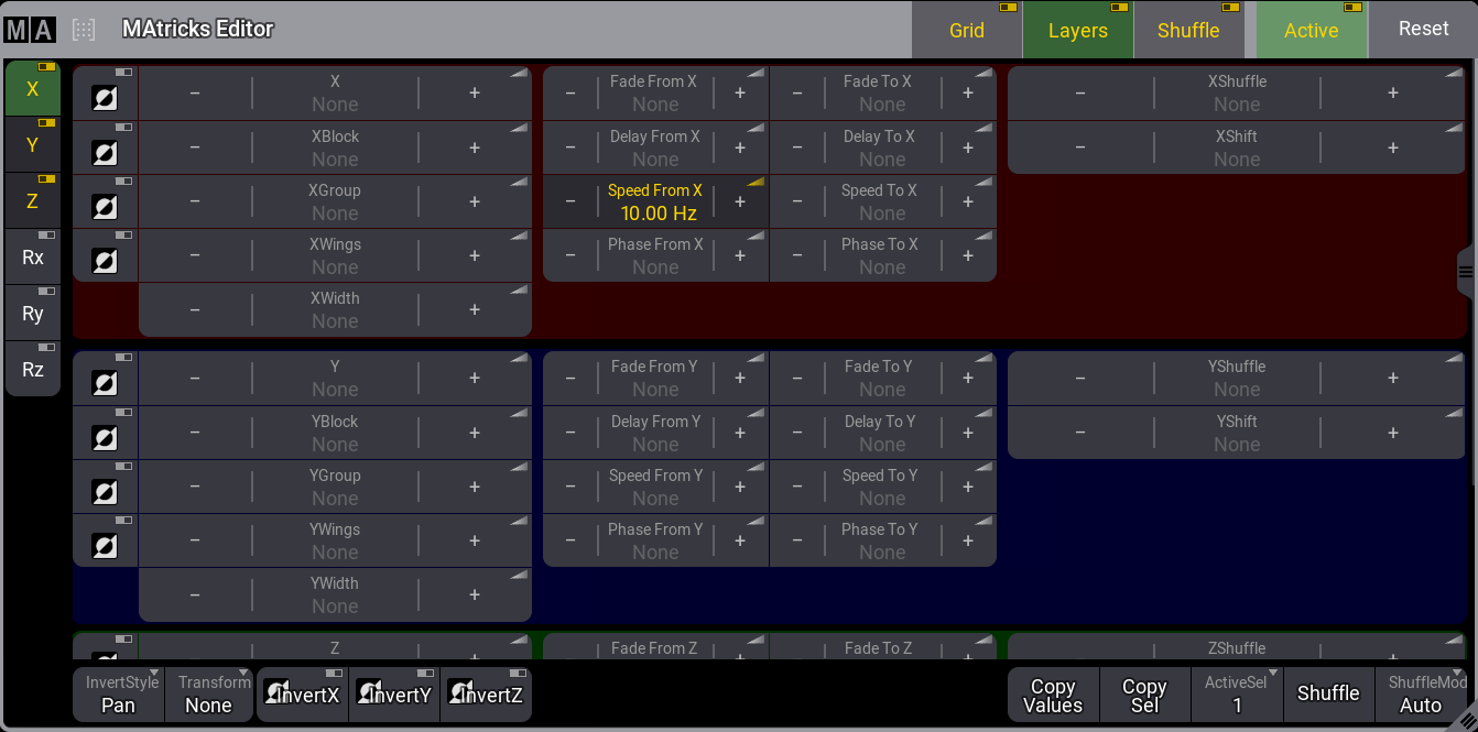- InvertX: Inverts the overall invert of the current individual inverts per MAtrick property on the X axis.