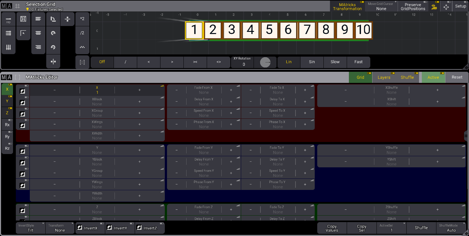 If the fixtures are in a 3-dimensional grid selection, then the MAtricks tool can be used in all three dimensions.