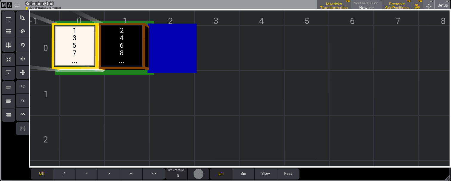 Notice how the ten fixtures are moved into two boxes in the selection grid.