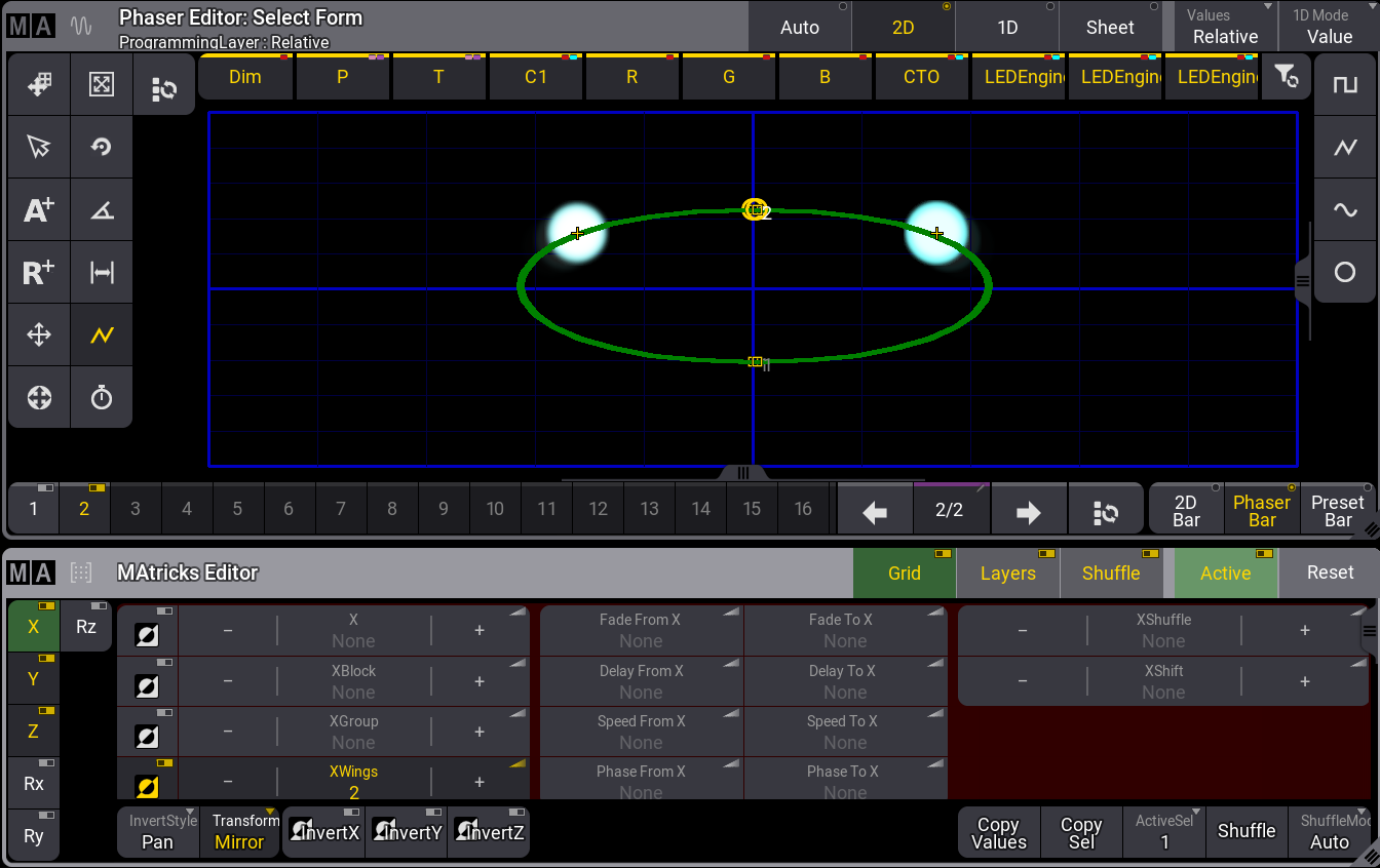| As soon as there are attributes with two or more steps, Mirror will only mirror the values of the multi-step phasers. |