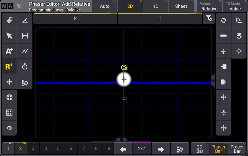 button in the left tool button bar of the phaser window. - Set two points, "1" and "2," like in the image below: