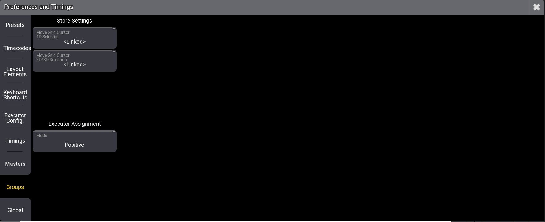 Preferences and Timing - Groups menu