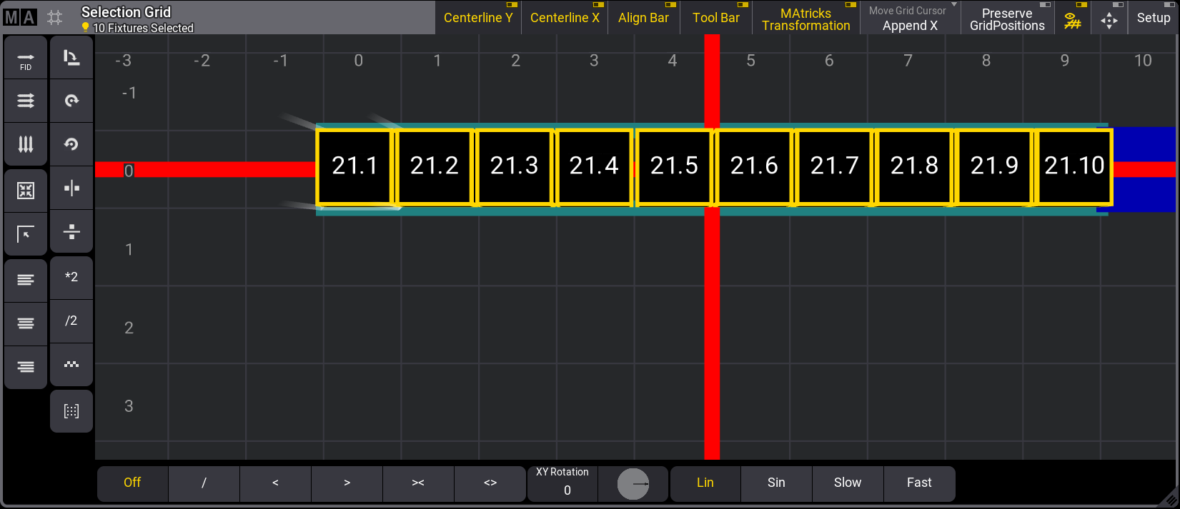 - MAtricks X, Y, and Z directions are relative to the entire range of selected fixtures.