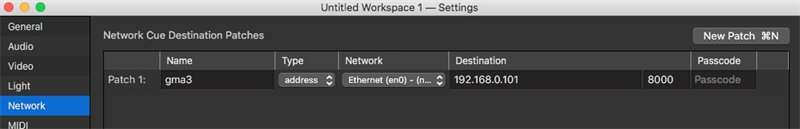 - Destination = configuration as set in the "Network Cue Destination Patches" above