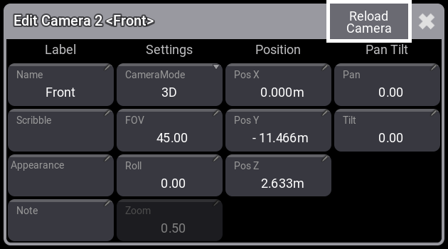The zoom value is very useful with 2D cameras. The zoom value goes from 0.01 to 1. It goes from narrow to wide. - Pos X: