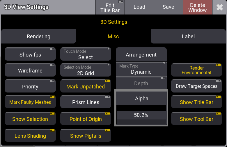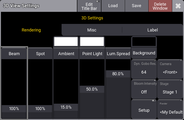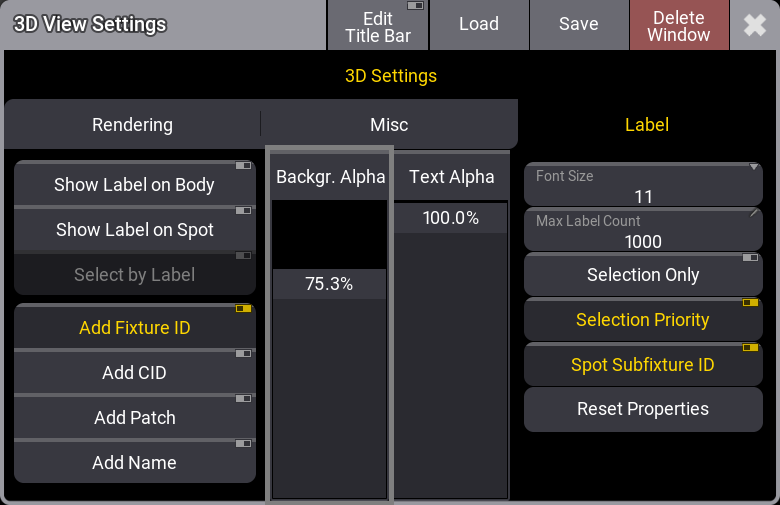 This opens a settings pop-up. This pop-up has tabs called Rendering, Misc, and Label.