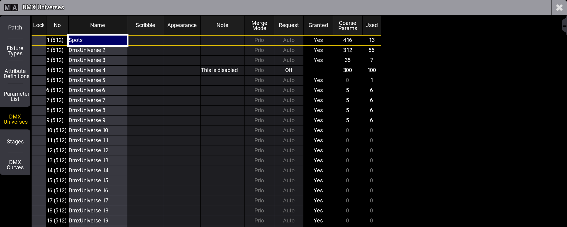 DMX Universes