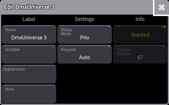 It is possible to edit the same settings as in the DMX Universe menu.