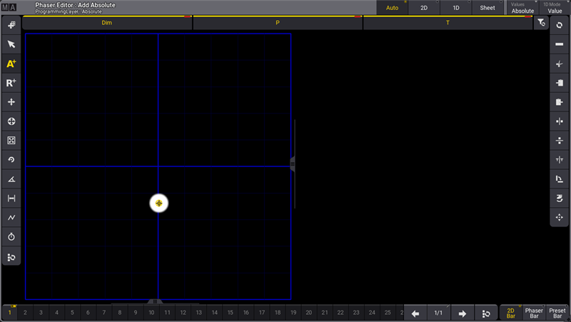 This topic presents an example of one method for creating a simple circle phaser. It uses absolute position values and will always move the lights in the specified circle. See the Create Circle Phaser Around Position topic for an example that covers creating a relative phaser circle, which can be used with different absolute base positions.