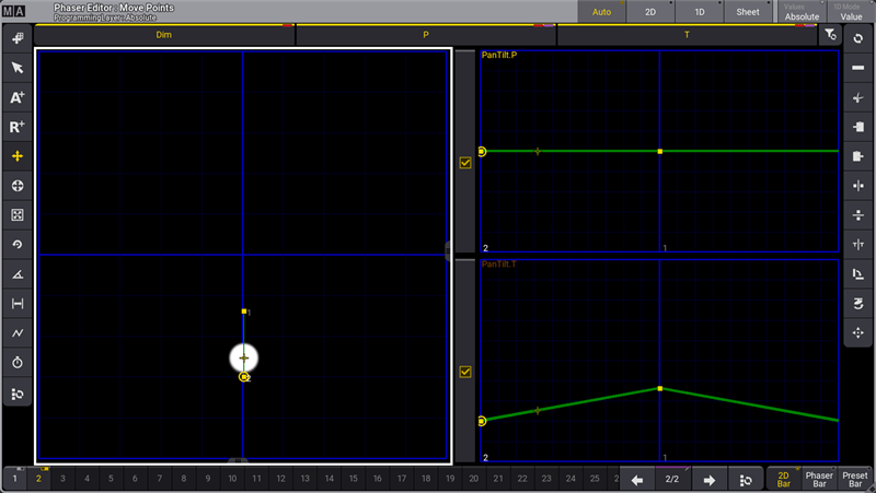 This creates the first absolute point. The selected fixtures move to this static position. This is an absolute position value in step one.