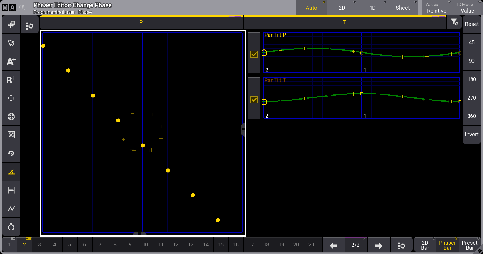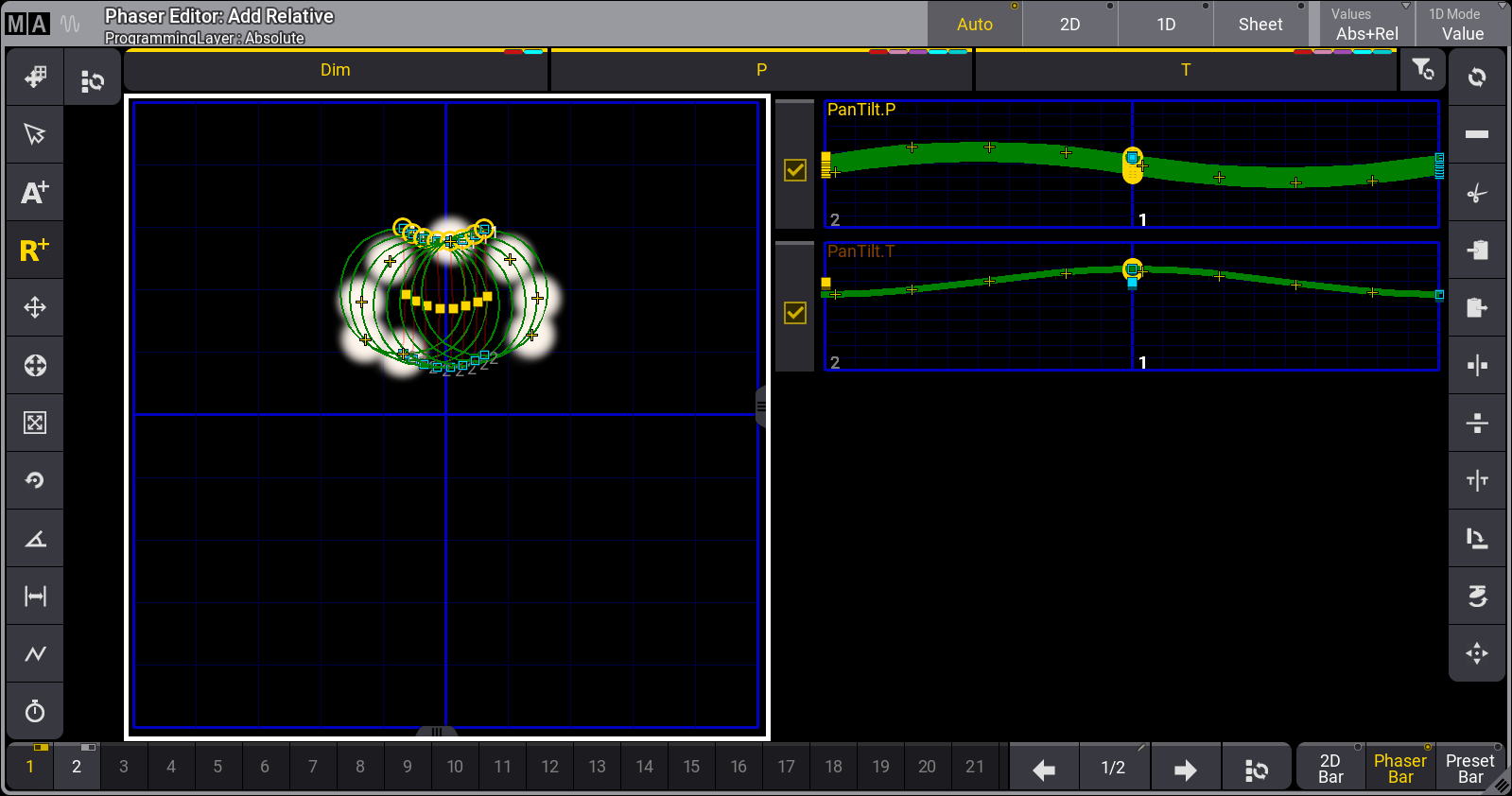 | Combining relative phasers with separate absolute presets provides greater flexibility for creating dynamic looks. |