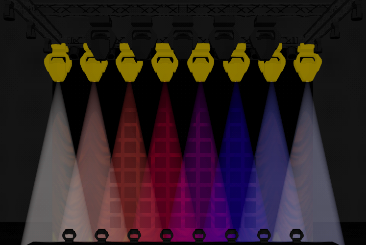 - Bring the dimmers to full so the beams are visible.