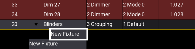 It is important that you do not select the lowest New Fixture as this is outside the "Blinders".