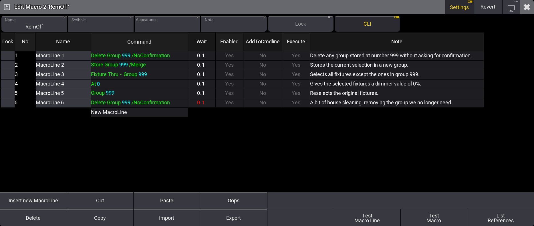 We are going to create another macro. It uses multiple lines and a temporary group (number 999).