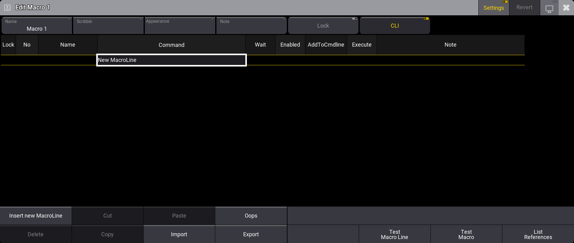 In the editor, we can create macro lines. Each line is executed one by one. A macro needs at least one line.