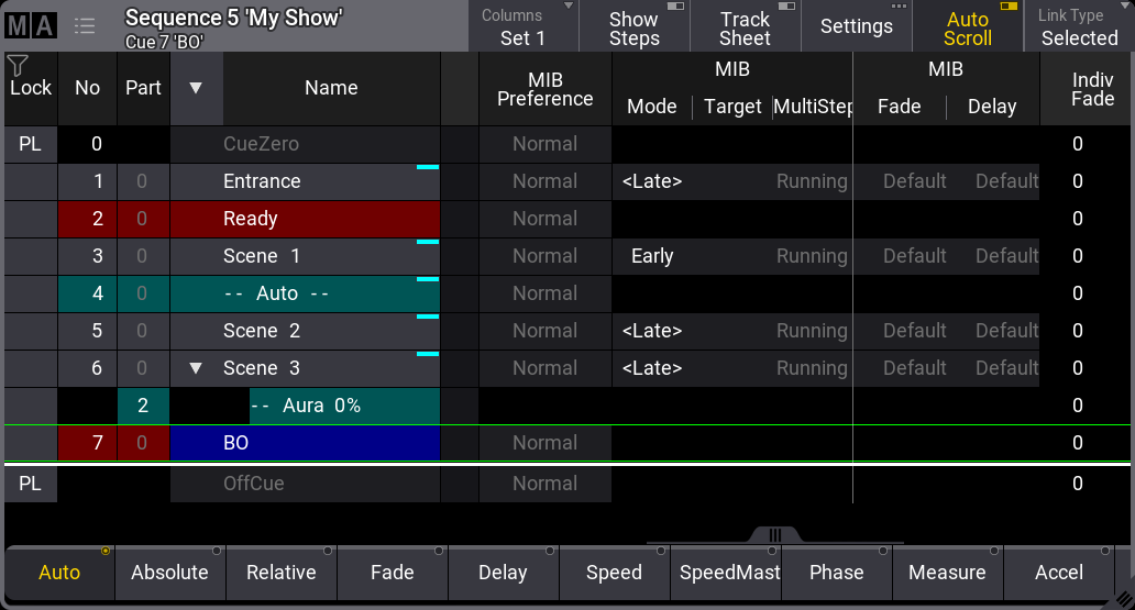 You can see that cue 3 still has the mode we specifically selected, but all the other cues use a different default MIB mode.