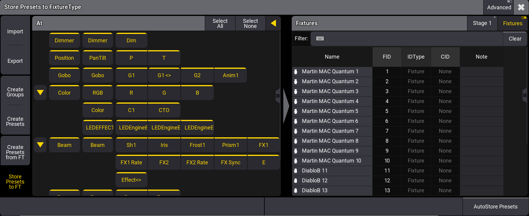 Store Presets to Fixture Type (FT) when Advanced is enabled