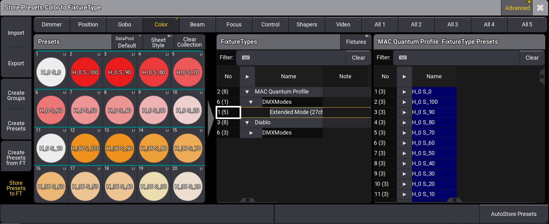 grandMA3 User Manual » Show Creator » Store Presets to Fixture Types
