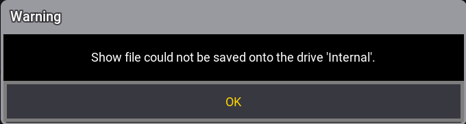 If the show file cannot be saved due to a full disk, a warning pop-up will appear.