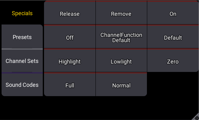 - ChannelFunctionDefault: Tap to set the attribute to the default value of the selected channel function. For more information see ChannelFunctionDefault Keyword.