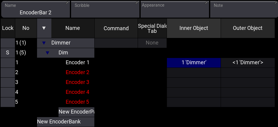 - Repeat steps 2-3 and rename EncoderPage 1, for example, to Dim. A new EncoderBank is created.