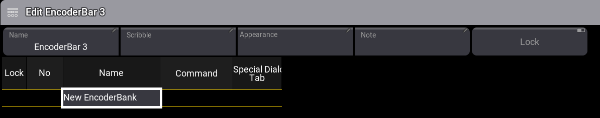 - Encoder Bank Button: There can be several encoder banks inside an encoder bar pool object. Allows to link to Special dialog tap.