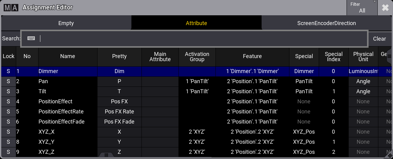 Select an Attribute, for example, Dimmer. The assignment editor closes and the Inner Object is assigned to Dimmer.