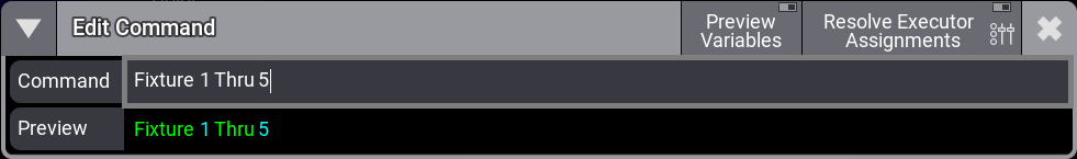 - Type a command, for example, Fixture 1 Thru 5 and then press Please.