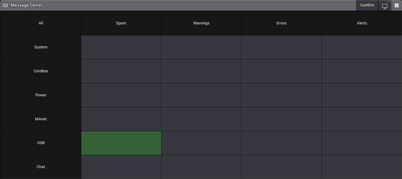 The envelope icon on the right side of the command line changes color to indicate new messages in the message center. Tap the icon to open a temporary version of the Message Center window.