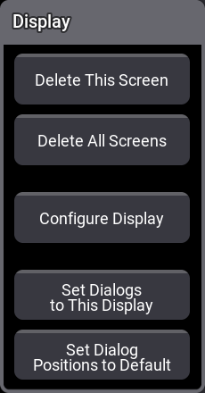Most of the actions performed using this pop-up relate to the specific screen where the menu is touched. For instance, deleting a screen (removing the windows from the screen).