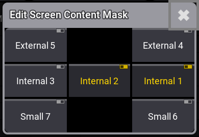 If a view has stored information about two or more screens, then there is an icon on the view pool object indicating the relevant screens in a brighter color than the others in a grid matching the screen grid in the Store View Options pop-up. View number 20, in the image above, has stored windows for Internal 1 and 2.