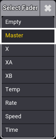 It might be possible to change the function of the fader. This depends on what type of object an executor has. They are changed just as the executor keys - by tapping the onscreen representation in the assign menu (see above).