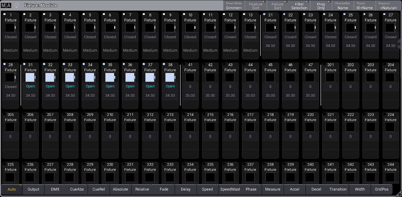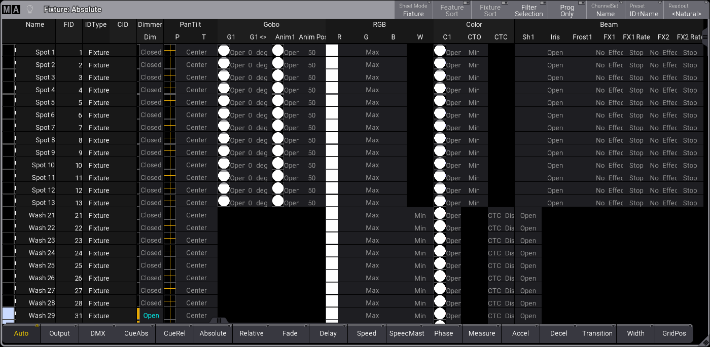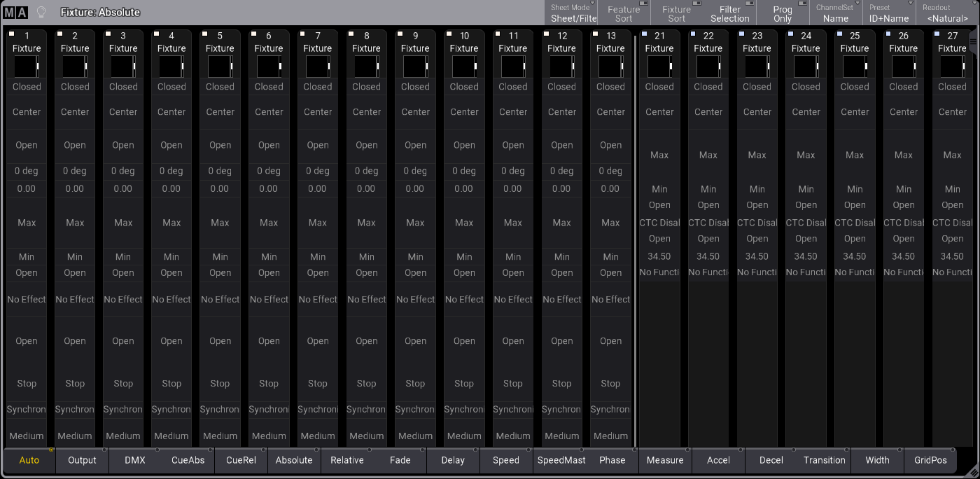 grandMA3 User Manual » Operate Fixtures » Fixture Sheet » Fixture Sheet Modes
