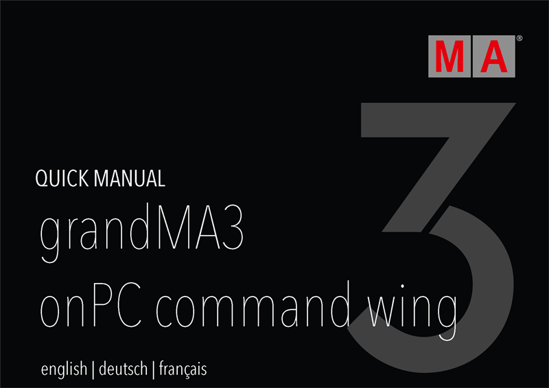 grandMA3 User Manual Publication grandMA3 Quick Manual onPC Command Wing grandMA3 Quick Manual onPC Command Wing SubtopicsIntended UseSafetySupportTransportLimitationsQuick StartMaintenanceDisposalTechnical DataHardware-Related InstancesDeclaration of Conformity