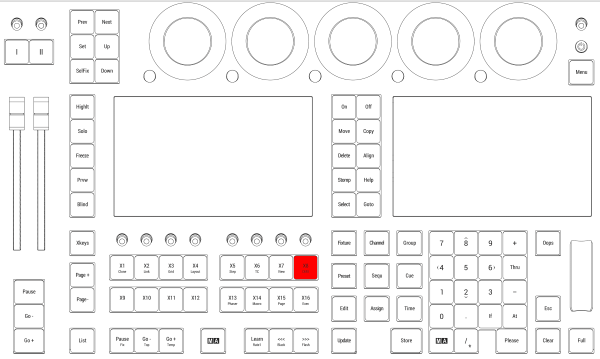 Pressing and holding MA + X8 | DMX + X8 | DMX enters the DMXAddress keyword into the command line.