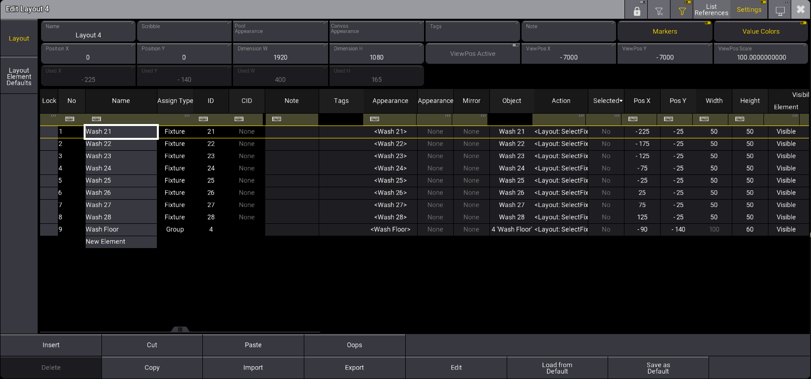 - When enabled, the layout property Markers display the layer markers of fixtures at their corresponding layout elements.