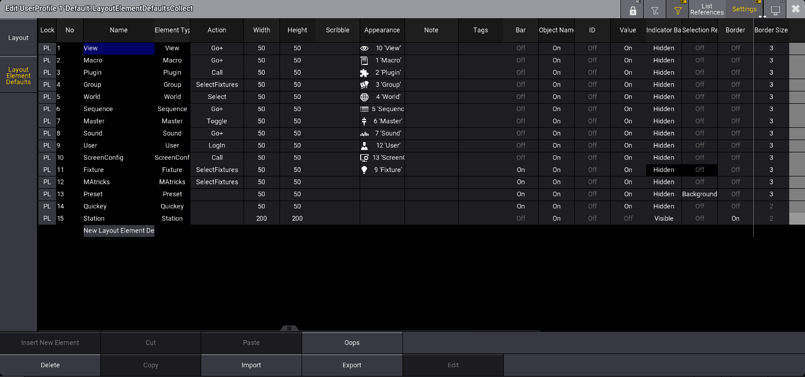 Layout element defaults are part of the user profile and will apply as a default template when assigning an object to a layout.