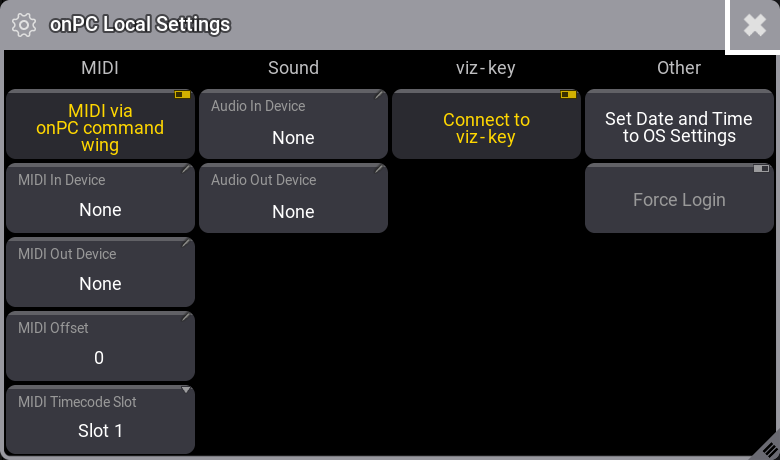 - To attach the viz-key dongle to a visualizer that is running on the same computer as the onPC, disable Connect to viz-key.
