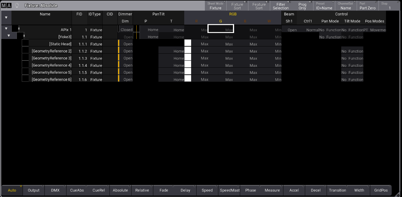 grandMA3 User Manual » Operate Fixtures » Parent Child Fixture Behavior