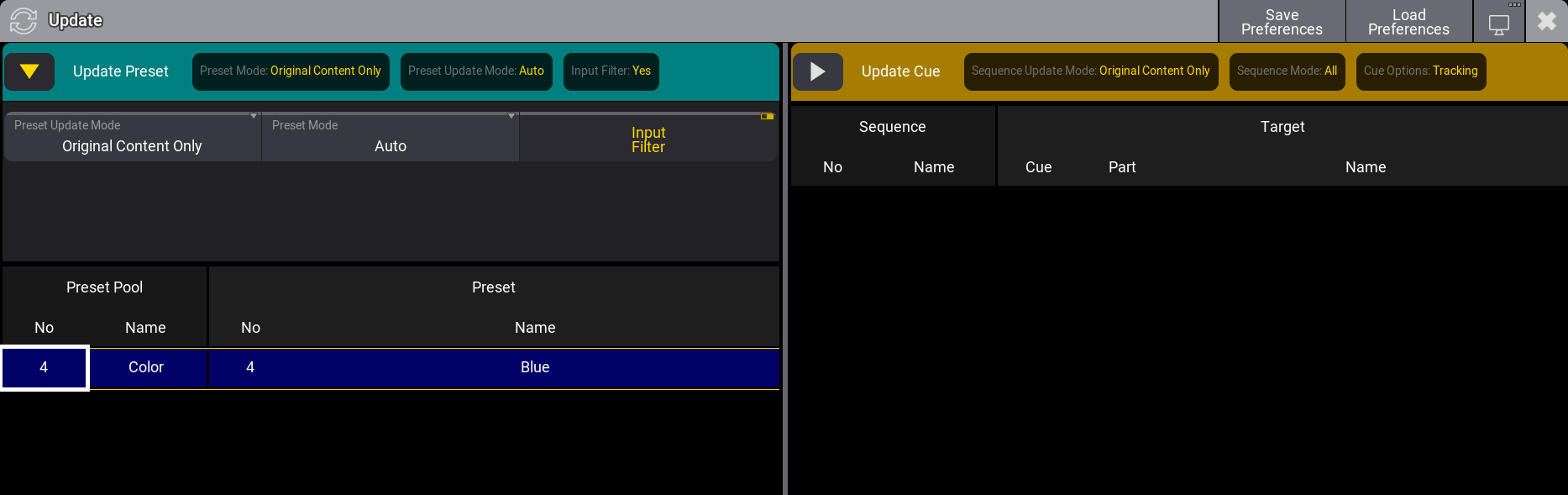 grandMA3 User Manual » Presets » Edit or Update Presets