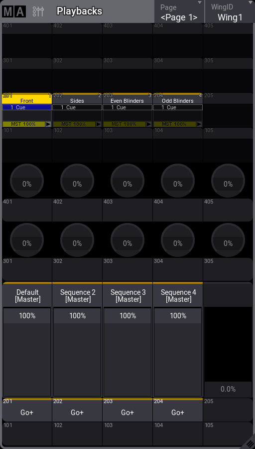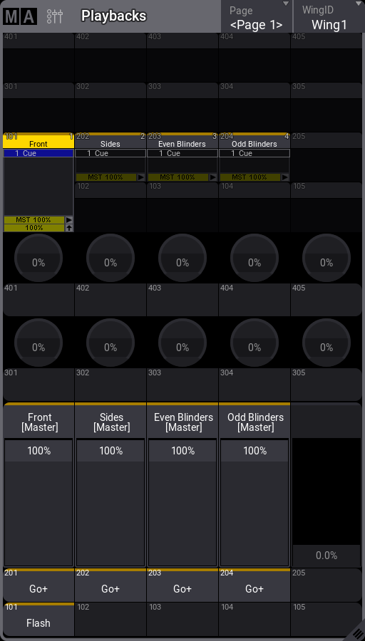 Let us try to modify the controls to give us some more buttons. We would like to use the 101, 102, 103, and 104 as flash buttons for the sequences above.