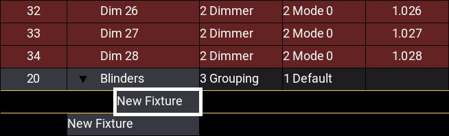 It is important that you do not select the lowest New Fixture as this is outside the "Blinders".