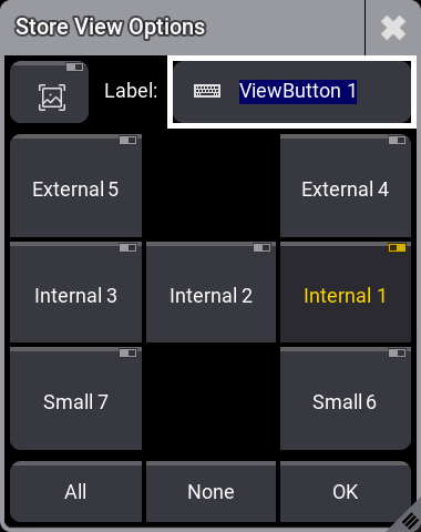 Here, we can see that we are currently storing the windows on display "Internal 1" and we can give the view a name or label. Write Dimmer as the name/label and click OK.