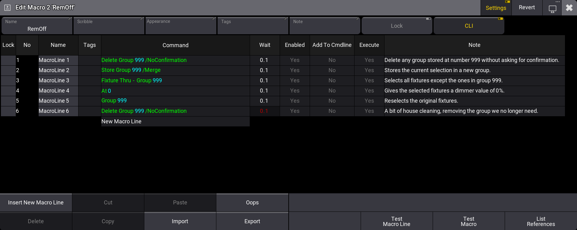 The final line is the same as the first line Delete Group 999 /NoConfirmation. This is a bit of house cleaning, removing the group we no longer need.