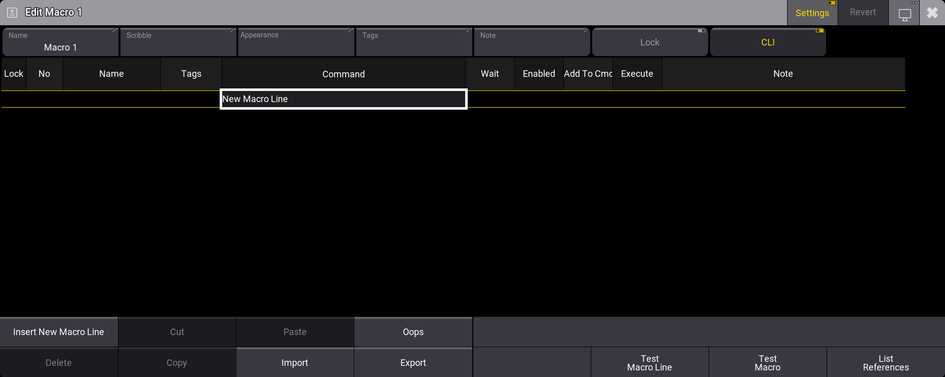 In the editor, we can create macro lines. Each line is executed one by one. A macro needs at least one line.